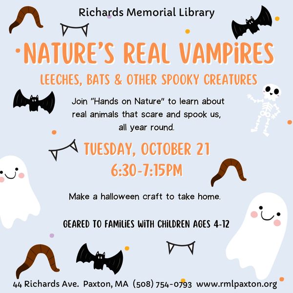 Nature's Real Vampires w/Hands On Nature Tuesday 10/21, 6:30pm